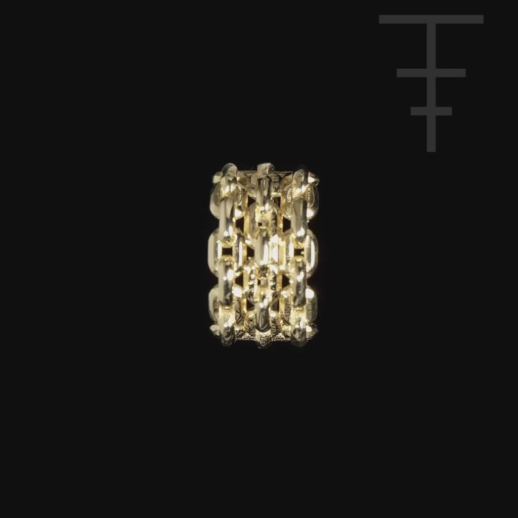 The Riot Clicker brings a refined edge to any curation with its triple-stacked chain links cast in solid 14k gold. Bold, weighty, and expertly crafted, this side-facing design delivers high-end attitude for those who invest in statement pieces built to last.